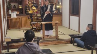 行学寮で法話練習が始まりました。最初は5分の自己紹介、次は10分の法話へ。人前で話す経験が少ない新入生も、自分の言葉で仏教を伝えようと工夫を重ねています。